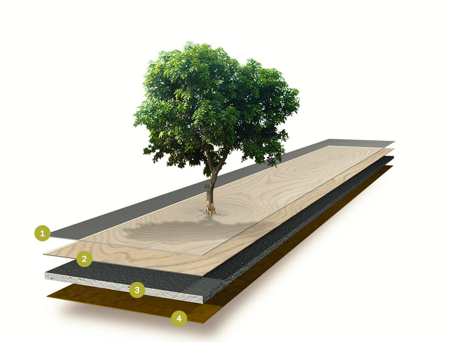Unsere Überzeugung von Nachhaltigkeit geht noch weiter: Im Sinne der Kreislaufwirtschaft nutzen wir vermehrt Altholz in der Plattenherstellung. Dabei verschwenden wir keine Teile des Baums, sondern verwenden sogar das, was normalerweise ungenutzt bleiben würde. Die verdichtete Trägerplatte des Ikō Laminatbodens, bestehend aus Holzfasern, wird von einem Gegenzug aus denselben Materialien stabilisiert. Selbst der Kleber, den wir verwenden, entnehmen wir zum überwiegenden Teil aus den im Holz vorhandenen Harzen. Das Ergebnis: ein Bodenbelag, der nicht nur umweltfreundlich, sondern auch extrem langlebig ist.