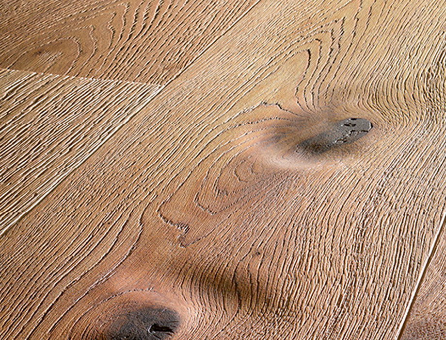 Das Öl bewirkt zusätzlich zu den optischen Akzenten, dass das Material natürlich anmutet. Du kannst die Poren und Maserungen wie bei einem unbehandelten Holz mit deiner Haut spüren. Dieses dreidimensionale Bild ist tastbar. Noch stärker regt diese Weise des Veredelns alle Sinne an, wenn wir zusätzlich die Astkonturen oder Risse herausarbeiten.
