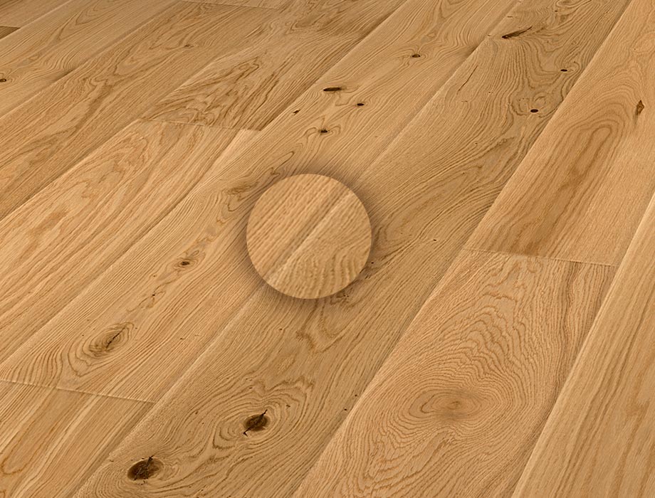 Veredeln wir die Deckschicht mit Öl, "feuert" es das Holz an. Das bedeutet, dass wir die natürlichen Farben und Strukturen des Holzes betonen. Die Farben sind intensiver und die Linien und Markstrahlen kontrastreicher.