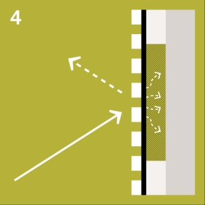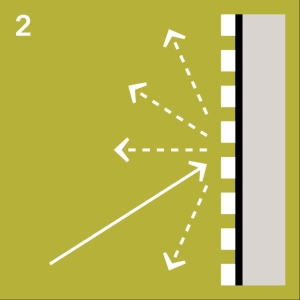 Wenn Schallwellen auf eine harte Oberfläche treffen, erfolgt in der Regel eine direkte Reflexion, bei der der Schall mit gleicher Intensität zurückgeworfen wird. Dies kann sich nachteilig auf die Raumakustik auswirken und zu einer weniger angenehmen Klangumgebung führen.