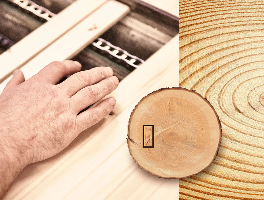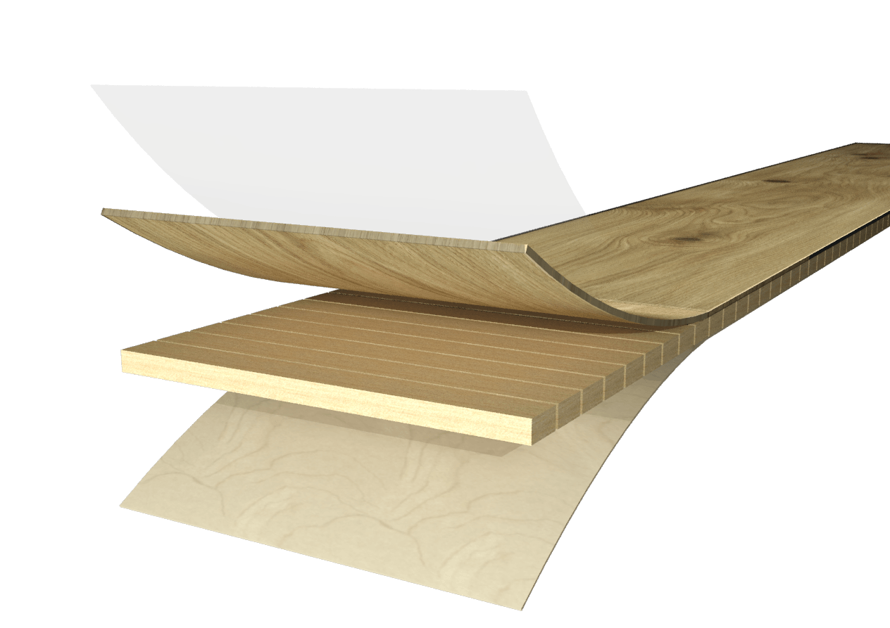 How does an expert recognise well-made 3-layer engineered hardwood flooring? He checks the middle layer. This is the supporting layer that makes up the largest part of the engineered hardwood flooring. Spruce is often used for this. The quality of the material can be determined by the annual growth rings. If the rings are ‘standing’ then the spruce wood of the middle layer is particularly stable and shrinks considerably less than where the rings are flat.