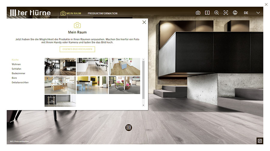 Mediante nuestro decorador virtual de pavimento puedes visualizar cualquiera de nuestros pavimentos en tu propio hogar. Aquí y ahora. Solo tienes que utilizar tu smartphone. Una vez que hayas accedido al decorador virtual de pavimento, tienes dos posibilidades: