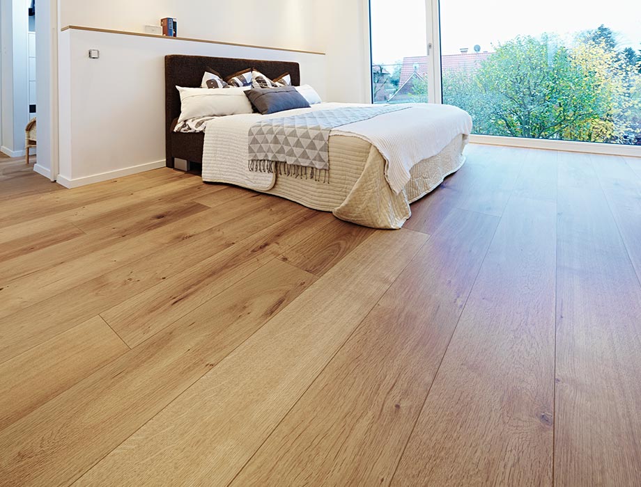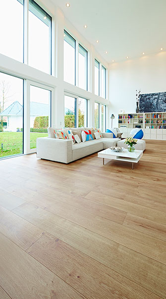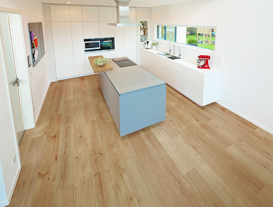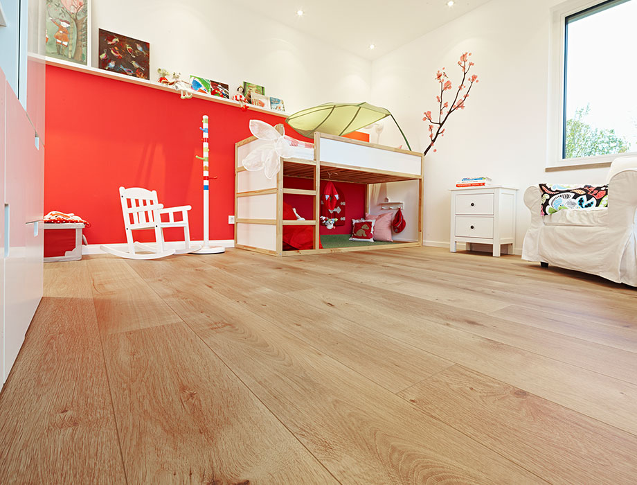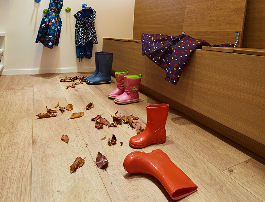 Markus: Podłoga jest w stanie sporo wytrzymać. To dobrze, bo nasze maluchy intensywnie z niej korzystają, na przykład, gdy ścigają się swoimi samochodami po domu albo gdy podczas jedzenia coś spadnie na podłogę. Ta podłoga jest bardzo łatwa w pielęgnacji. Nawet, gdy ktoś przyniesie brud z ogrodu, nie stanowi to problemu. Podłoga leży już u nas jakiś czas. I nadal wygląda, jakby była położona wczoraj.
